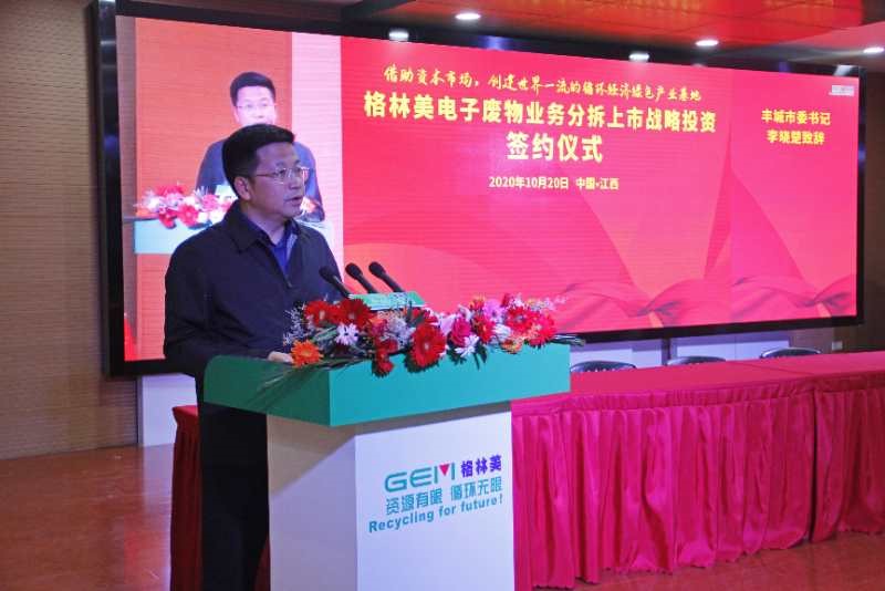 在簽約現(xiàn)場(chǎng),格林美集團(tuán)董事長(zhǎng)許開華教授感謝了宜春市委市政府與豐城市委市政府,他指出格林美選擇以江西園區(qū)作為分拆主體,一是因?yàn)楦窳置涝谪S城投資10年,投資非常成功!二是因?yàn)榻髫S城是一座擁抱循環(huán)經(jīng)濟(jì)的友好城市,豐城人重情重義,真心真意辦實(shí)事,宜春與豐城營(yíng)商環(huán)境優(yōu)越,出臺(tái)了一系列推動(dòng)循環(huán)經(jīng)濟(jì)發(fā)展的好政策,格林美對(duì)宜春與豐城未來的發(fā)展信心滿滿,也堅(jiān)信豐城這片人杰地靈的土地上,一定會(huì)孕育和產(chǎn)生一批偉大循環(huán)經(jīng)濟(jì)和廢物處理的企業(yè)。豐城市擁有悠久的循環(huán)經(jīng)濟(jì)產(chǎn)業(yè)傳統(tǒng),擁有遍布全國的30萬回收大軍,是國家循環(huán)經(jīng)濟(jì)示范城市,而循環(huán)經(jīng)濟(jì)產(chǎn)業(yè)更是明確列為豐城市的首位產(chǎn)業(yè)。豐城把循環(huán)經(jīng)濟(jì)產(chǎn)業(yè)與生態(tài)城市建設(shè)作為未來轉(zhuǎn)型升級(jí)、跨越發(fā)展的主抓手,作為城市生態(tài)文明建設(shè)的動(dòng)力引擎。