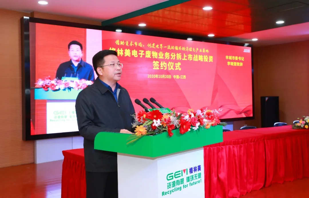 在全市上下深入貫徹宜春市委四屆十次全會精神之際,10月20日,格林美電子廢物業(yè)務(wù)分拆上市戰(zhàn)略投資簽約儀式在市循環(huán)經(jīng)濟(jì)產(chǎn)業(yè)園區(qū)隆重舉行。宜春市委書記于秀明,宜春市委常委、常務(wù)副市長蔡清平,豐城市委書記李曉楚,市長徐結(jié)強,格林美集團(tuán)董事長、總經(jīng)理許開華、格林美集團(tuán)董事王敏夫婦等格林美集團(tuán)負(fù)責(zé)人一同出席簽約儀式,市委常委、常務(wù)副市長余華陽主持簽約儀式。市領(lǐng)導(dǎo)羅光輝,宜春豐城高新區(qū)領(lǐng)導(dǎo)熊震宇,豐城發(fā)展投資控股集團(tuán)有限公司、樂清德匯等十余家戰(zhàn)略投資者,金發(fā)科技、南京聚隆、廣東銀禧、會通新材料、上海睿莫等產(chǎn)業(yè)鏈上下游二十余家戰(zhàn)略客戶,共計200余人出席了簽約儀式。