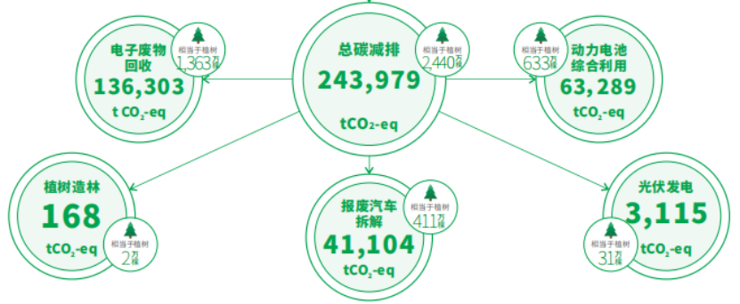 報廢汽車是最大的資源循環(huán)產(chǎn)業(yè),是碳中和戰(zhàn)略與循環(huán)型社會建設的主戰(zhàn)場。報廢汽車中含有70%以上的有價資源,報廢汽車的回收拆解可以獲得重要的金屬資源(如:鋼鐵,銅,鋁等),這些金屬資源的獲得能直接減少從金屬原礦的冶煉過程中帶來的大額碳排放,因此,通過金屬資源的回收可以達到明顯的減碳效果。同時報廢汽車上的一些重要的零部件(如五大總成:發(fā)動機、方向機、變速器、前后橋、車架)可以通過再制造,在汽車上循環(huán)利用,這不但提高了產(chǎn)品的使用效率,同時減少了從原材料制造加工獲得零部件的過程,創(chuàng)造一定的減碳效益。 格林美2020回收報廢汽車17.5萬噸,通過查閱文獻計算可知,減少二氧化碳排放41104萬噸,相當于種植了411萬棵樹一年內(nèi)的碳減排量。