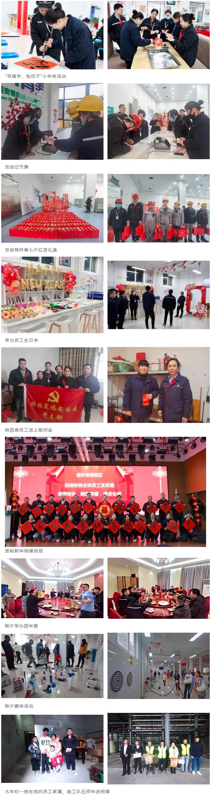 2022年春節(jié)前夕,為了響應政府“不停工、不停產,就地過年”的號召,福安青美能源材料有限公司開始積極準備過年期間生活物資的保障工作,積極營造過年良好氛圍。從農歷小年開始,公司就開始準備春節(jié)系列活動,開展“寫福字,包餃子”、發(fā)放過節(jié)費及格林美七夕紅茶禮盒、組織員工生日會、給困難員工送上慰問金,除夕當天舉行團年宴,開展趣味活動,大年初一給在崗的員工家屬拜年送祝福,看望堅守一線的員工。領導干部帶頭與員工一起在公司過年,讓就地過年的員工感受到在“家”的溫暖。