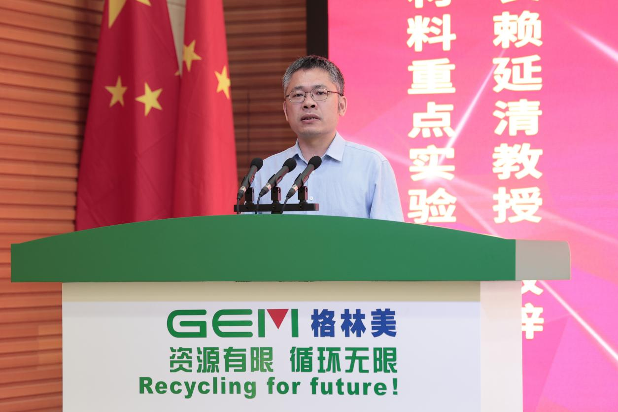 揭牌儀式上,國家能源金屬資源與新材料重點(diǎn)實(shí)驗(yàn)室主任、中南大學(xué)資產(chǎn)管理處處長賴延清教授首先致辭。賴延清教授介紹了重點(diǎn)實(shí)驗(yàn)室誕生的重要戰(zhàn)略背景。為保障國家能源安全和高質(zhì)量發(fā)展的需要,中南大學(xué)以其在新能源領(lǐng)域豐厚的歷史積淀和專業(yè)基礎(chǔ),聯(lián)合格林美等新能源材料的領(lǐng)域行業(yè)頭部企業(yè),圍繞保障能源供應(yīng)鏈和產(chǎn)業(yè)鏈安全的需求,聯(lián)合組建重點(diǎn)實(shí)驗(yàn)室,并在近200家申報(bào)單位中脫穎而出,成為第一批6個(gè)“掛帥出征”直接授牌建設(shè)的重點(diǎn)實(shí)驗(yàn)室。未來,重點(diǎn)實(shí)驗(yàn)室主要圍繞新能源資源的高效提取、新能源金屬資源的高效循環(huán)、高效能源轉(zhuǎn)化材料、電化學(xué)儲(chǔ)能材料等4個(gè)方向開展工作,打造成新能源資源回收行業(yè)、新能源新材料行業(yè)國際一流的人才培養(yǎng)、成果轉(zhuǎn)化技術(shù)開發(fā)中心。