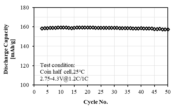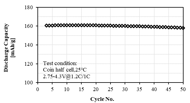 L-5050產(chǎn)品應(yīng)用:用于18650或方型電池,4.2V下測(cè)試,1C放電克容量為161mAh/g,循環(huán)性能:1C/1C,2000圈≥80%可用于動(dòng)力汽車及電動(dòng)工具。