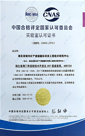 國家電子廢棄物循環(huán)利用工程技術研究中心分析檢驗中心(以下簡稱“中心”)成立于2005年,前身是荊門市格林美新材料有限公司檢測中心,主要業(yè)務是監(jiān)控公司所有化學物料的質量、環(huán)境及廢物回收利用等相關檢測工作,隨著檢測能力與知名度的增加,2012年,中心升格為“湖北省城市礦產(chǎn)資源循環(huán)利用工程技術研究中心”,于2013年開始獨立運行,并取得國家認可委頒發(fā)的CNAS證書,省質量監(jiān)督局頒發(fā)的CMA證書,2016年獲湖北服務行業(yè)名牌證書,主導、參與制定國家、行業(yè)標準30項,以服務社會為宗旨,對外提供檢測業(yè)務,業(yè)務服務范圍包括:電子廢棄物的循環(huán)利用研究檢測、稀貴、稀土金屬循環(huán)利用關鍵技術研究檢測、固體廢棄物循環(huán)利用檢測、新型電池材料檢測等。