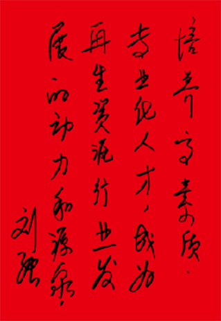 格林美培訓(xùn)學(xué)院名譽(yù)院長(zhǎng)、中國(guó)物資再生協(xié)會(huì)常務(wù)副會(huì)長(zhǎng)、國(guó)家循環(huán)經(jīng)濟(jì)咨詢(xún)專(zhuān)家劉強(qiáng)題詞